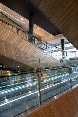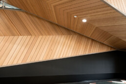 Touchwood Veneer Panels provided instant warmth to the large open retail space. Lining ceilings and walls, in a classic chevron pattern, the Tasmanian Oak panels provided a natural look to soften the space. With over 140 large panels installed efficiently, Touchwood Veneer Panels offered a solution that could not be achieved with any other product on the market.