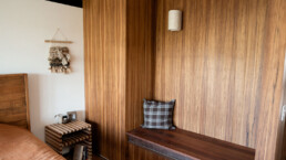 Designers don’t limit their imagination to only using Touchwood Veneer Panels as a wall panelling. By combining their creativity and Touchwood Veneer Panel’s easy installation and effortlessly versatile ergonomics, they use it to clad ceilings, bedheads, cupboards and counter fronts. It is equally at home fixed vertically or horizontally; in modern interiors or more traditional settings and can be left uncoated or finished with wax, oil or polyurethane in matt, gloss or satin finish.